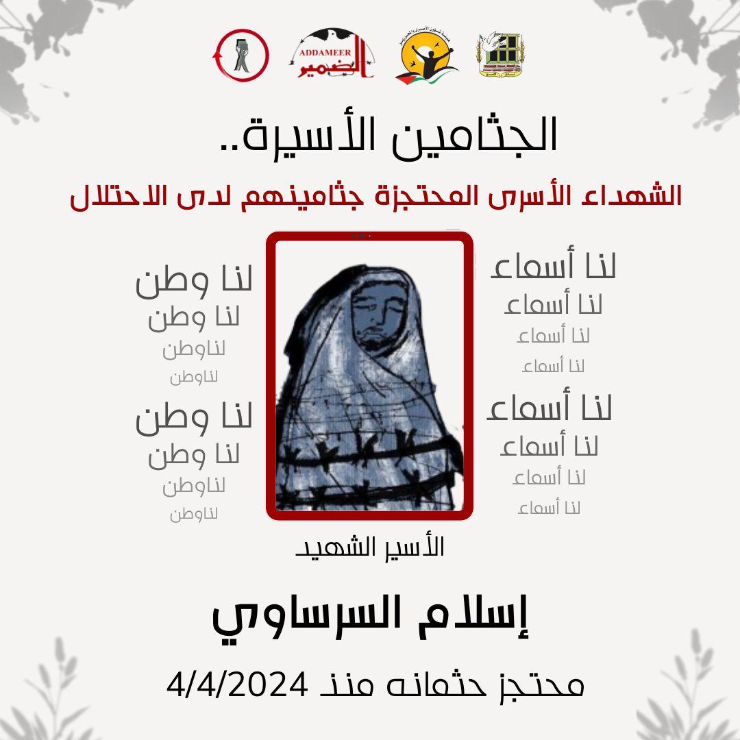29. الأسير الشهيد إسلام السرساوي، محتجز جثمانه منذ تاريخ 4/4/2024.