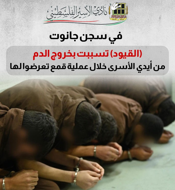 ● في سجن جانوت (القيود) تسببت بخروج الدم من أيدي الأسرى خلال عملية قمع تعرضوا لها
