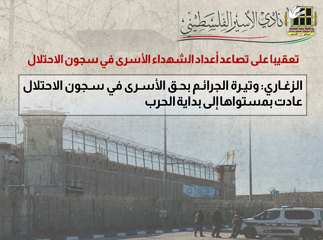 ■ الزغاري: وتيرة الجرائم بحق الأسرى في سجون الاحتلال عادت بمستواها إلى بداية الحرب
