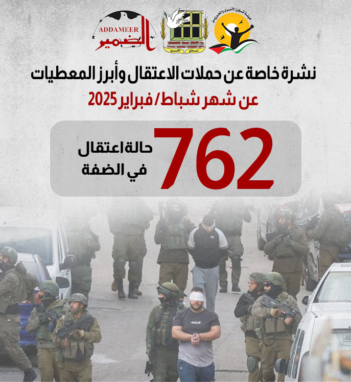 مؤسسات الأسرى: نشرة خاصّة عن حملات الاعتقال وأبرز المعطيات عن شهر شباط/