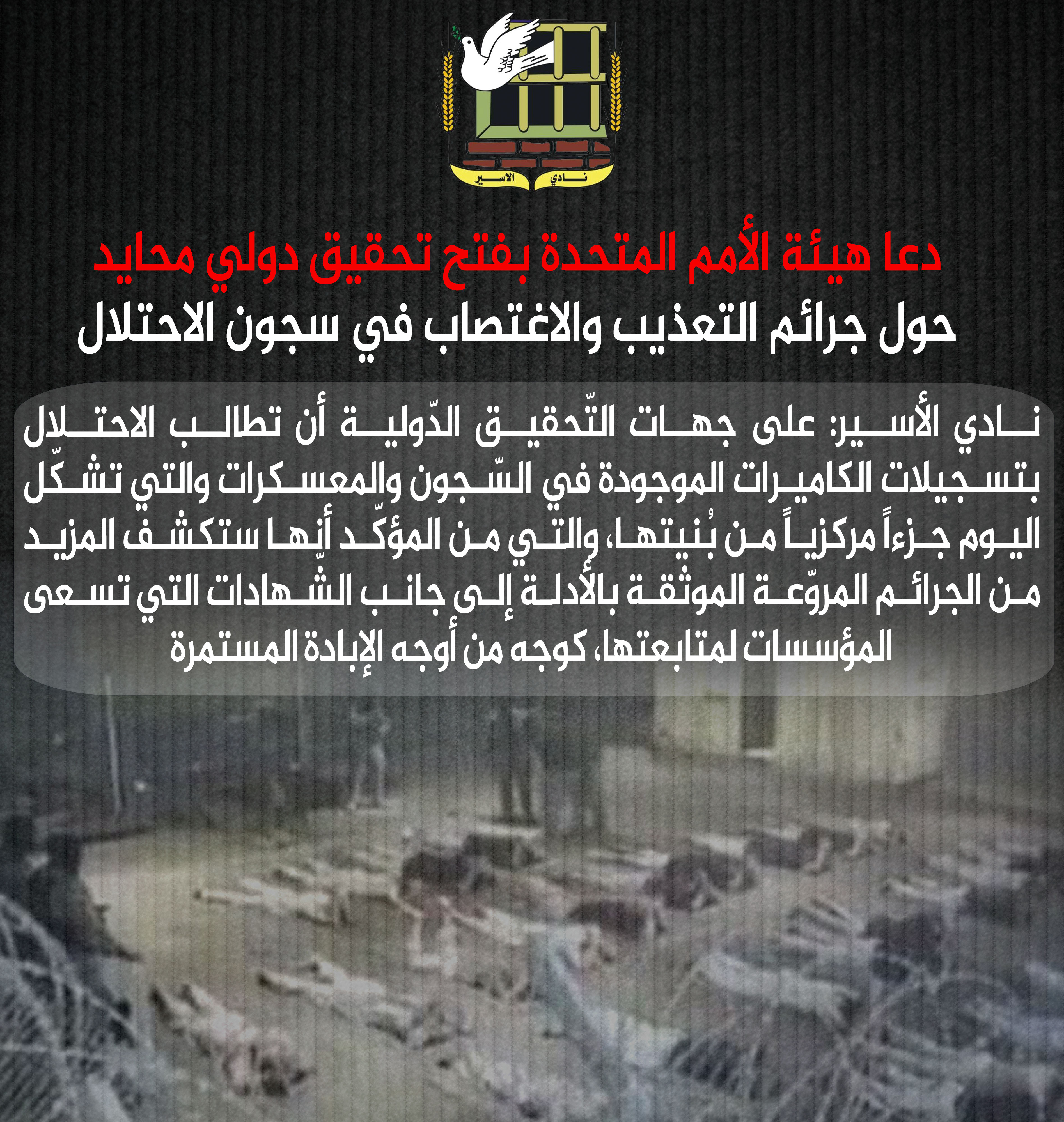 بيان صادر عن نادي الأسير الفلسطيني تعقيبا على شريط فيديو يظهر مجموعة من جنود الاحتلال ينفذون جريمة الاغتصاب بحقّ أحد المعتقلين في معسكر (سديه تيمان)