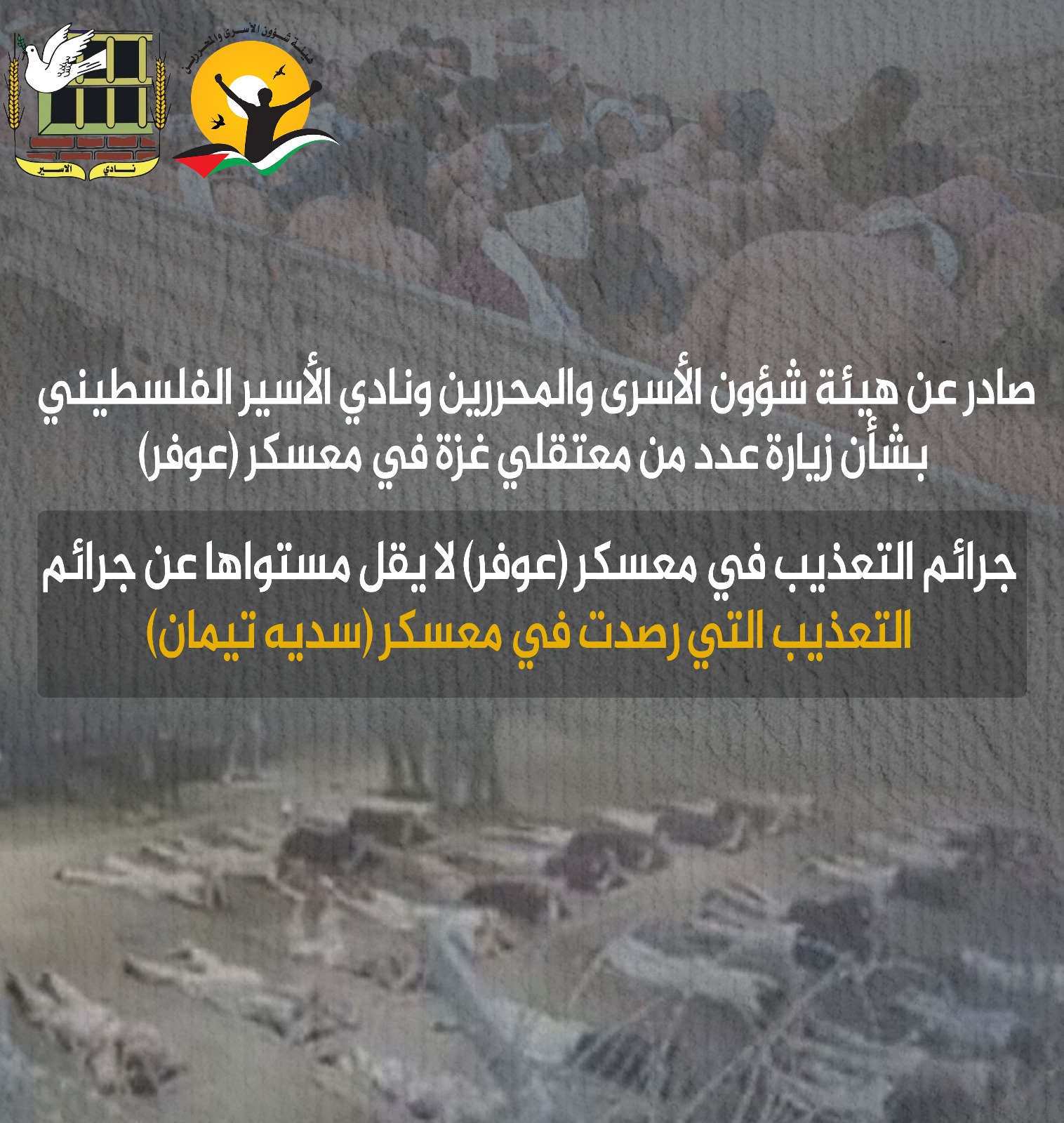 🔴 صادر عن هيئة شؤون الأسرى والمحررين ونادي الأسير الفلسطيني بشأن زيارة عدد من معتقلي غزة في معسكر (عوفر)