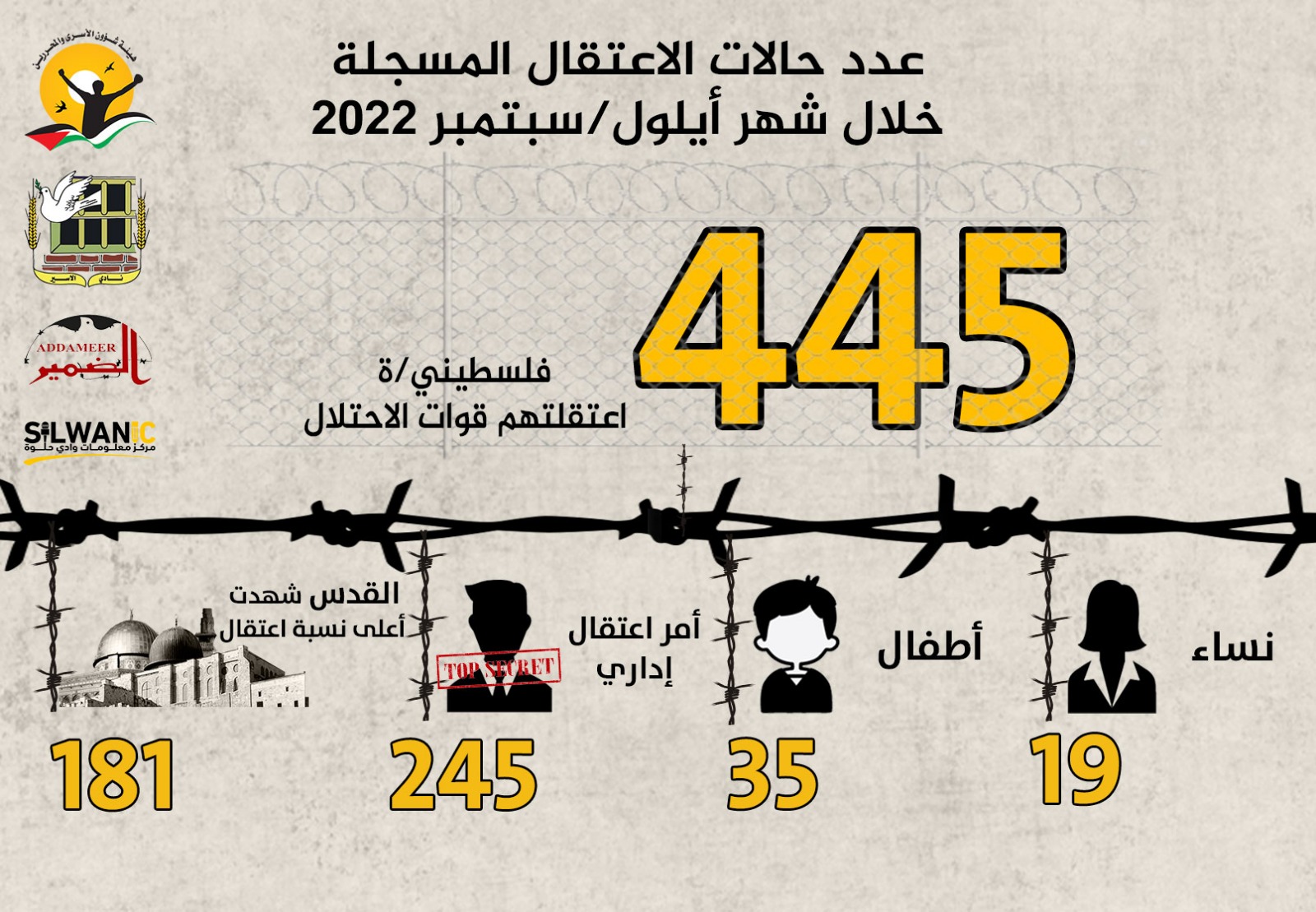مؤسسات الأسرى: الاحتلال اعتقل (445) فلسطينياً خلال شهر أيلول/سبتمبر 2022