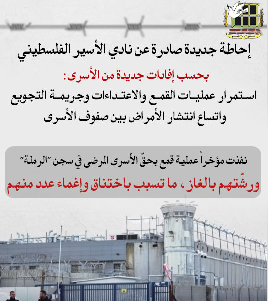 ⭕ *Palestinian Prisoner’s Society: Current and Former Detainees Suffering Diseases, Severe Health Setbacks Due to Detention Conditions, Systematic Violations*