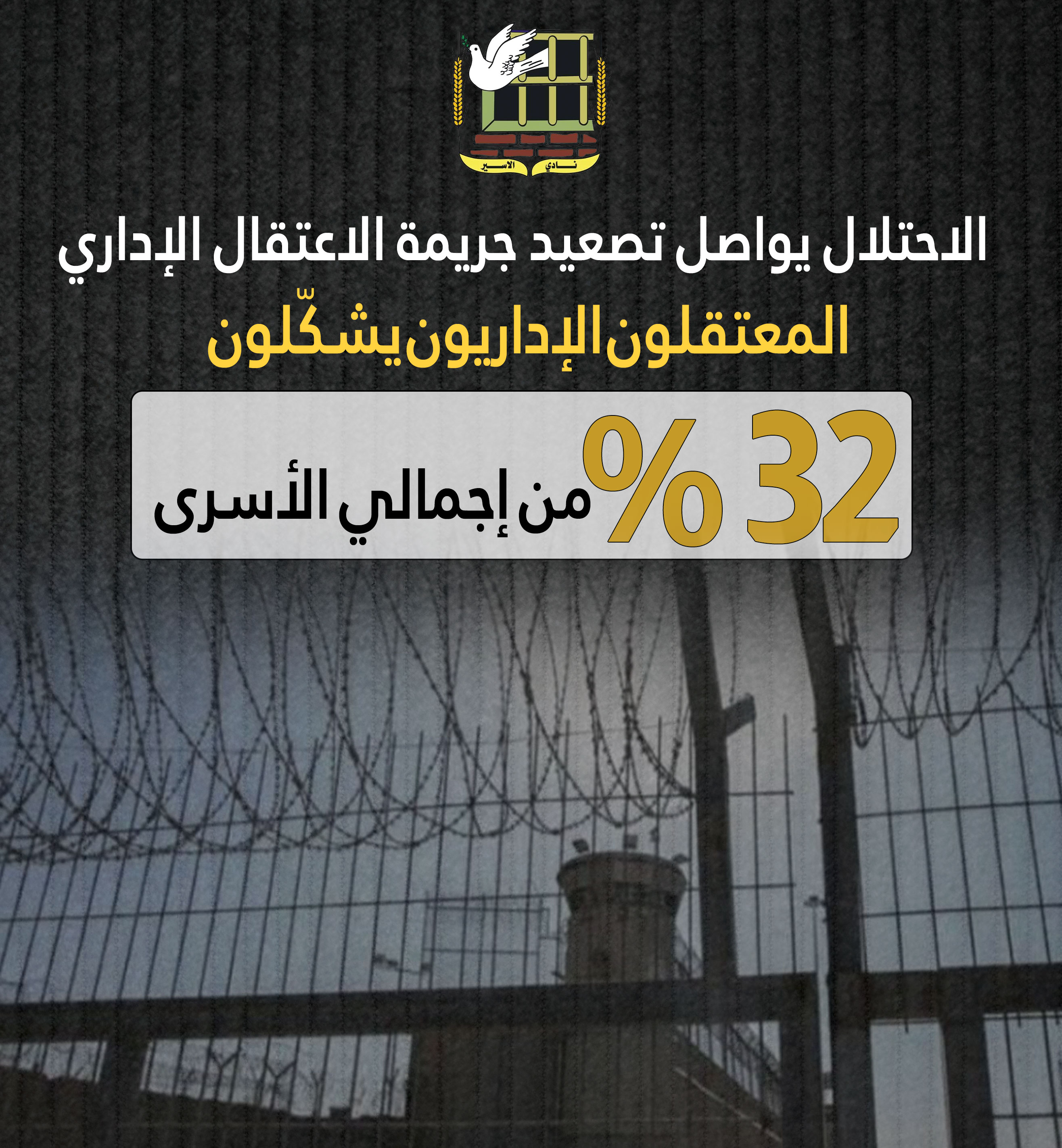 ⭕ المعتقلون الإداريون يشكّلون 32% من إجمالي الأسرى