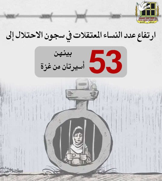 📌 نادي الأسير: ارتفاع عدد النساء المعتقلات في سجون الاحتلال إلى (53) بينهن أسيرتان من غزة