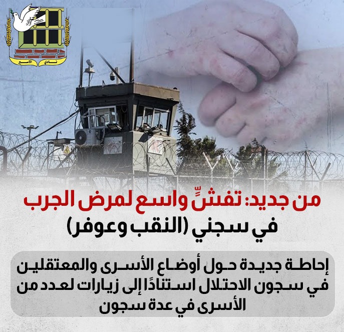 إحاطة جديدة صادرة عن نادي الأسير الفلسطيني حول عدد من الزيارات التي تمت خلال النصف الثاني من شهر آب/ أغسطس 2025، وشملت سجون جلبوع، والنقب، ومجدو، والرملة، وعوفر. المزيد من التفاصيل