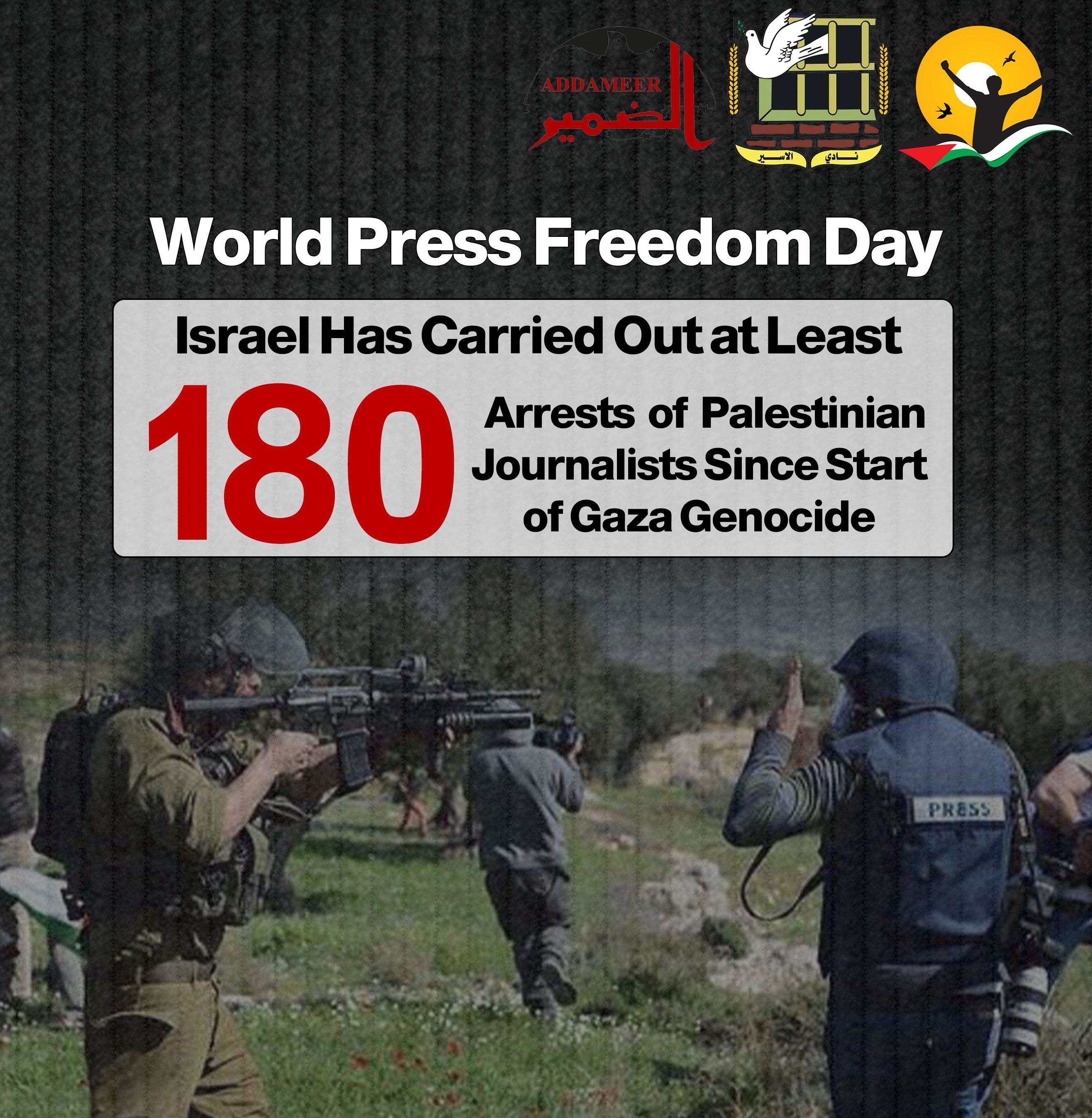 ● World Press Freedom Day: Israel Has Carried Out at Least 180 Arrests of Palestinian Journalists Since Start of Gaza Genocide